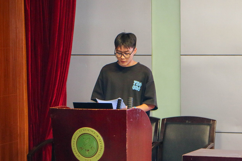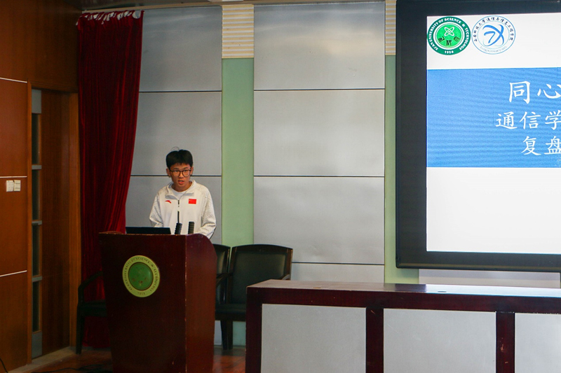 通信学院优秀运动员代表何文晖上台发言,分享了训练的艰辛与比赛中的拼搏历程,传递出通院青年坚韧不拔的体育精神。