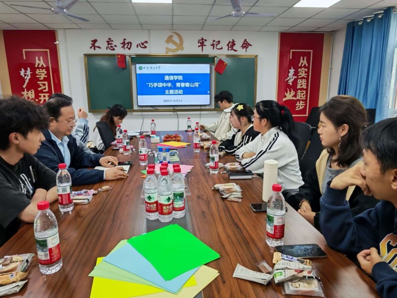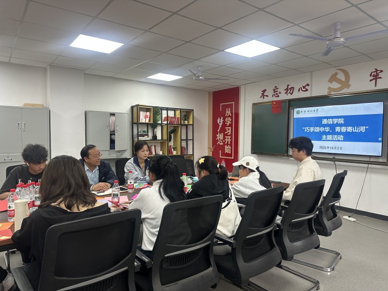 国庆节期间,通信学院“巧手颂中华,青春寄山河”书记面对面手工创作茶话会在笃行社区14号一站式公寓温暖举行。学院党委书记张剑、2025级新生辅导员白冰洁与学生代表齐聚一堂,在手工创作与温馨交流中共度美好时光。