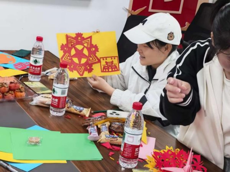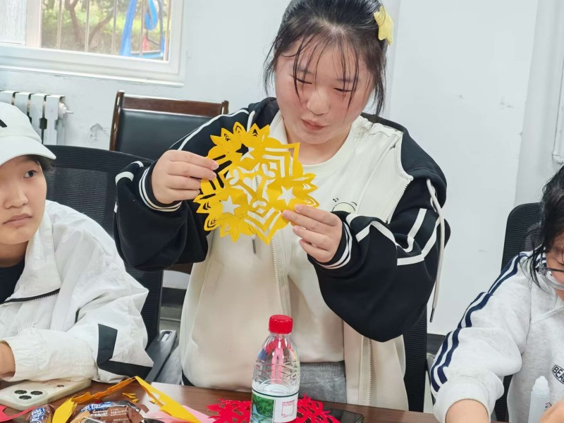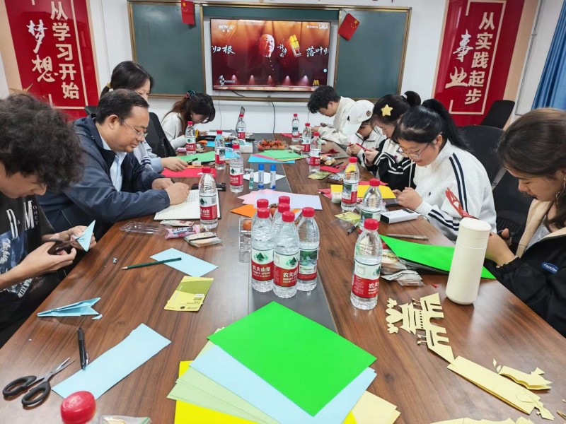 随后的手工创作环节将现场气氛推向高潮。剪纸、卡纸等材料在同学们手中焕发出独特魅力。一剪一裁间,红色基因缓缓流淌;一笔一画中,家国情怀跃然纸上。同学们以指尖艺术表达对历史的铭记、对和平的守望,在传统手工艺的体验中深化了“铭记历史、开创未来”的青春誓言。