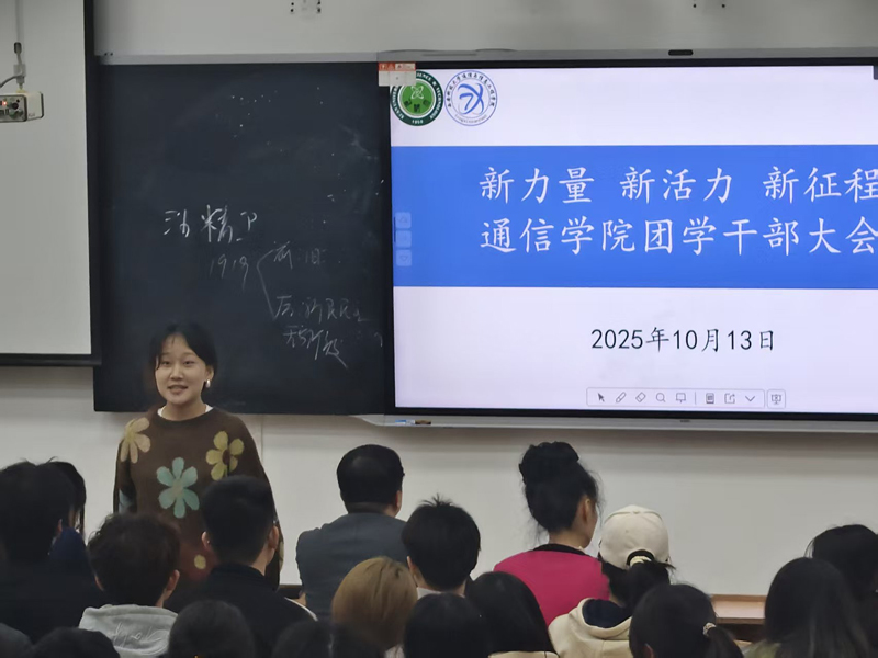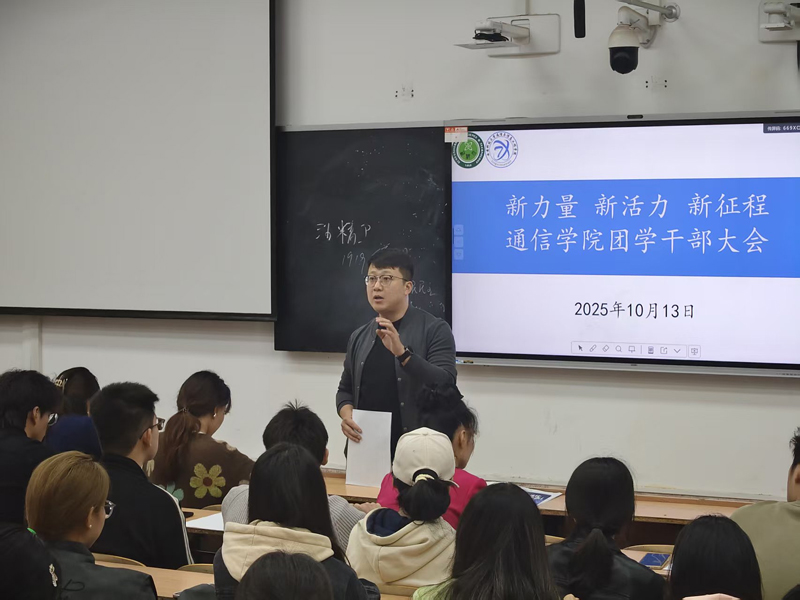 金秋送爽,青春聚力。10月13日,3教217教室内暖意融融,通信学院第三十三届团学干部大会在此温情启幕。本次大会由第三十三届团学主席谢羽彤主持,团委书记张剑,团委副书记王婧婕、李宜蔓、白冰洁出席会议,全体团学成员齐聚一堂,共话责任担当,共启青春新程。大会旨在强化团学成员身份认同与组织归属感,为后续发挥思想引领、筑牢基层建设的核心作用夯实根基。