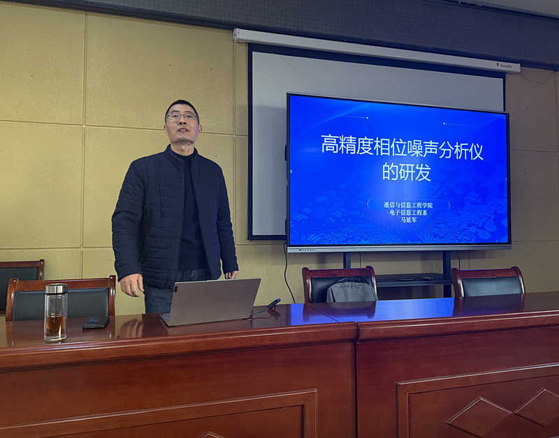报告中,马延军以“科研导游”的身份,将实验室正在进行的相位噪声分析仪项目比喻为一幅“宏大的拼图”,目前仍有诸多空白等待填补。他深入浅出地阐释了相位噪声在现代通信、导航、雷达等系统中的关键作用,指出该噪声如同信号的“心跳抖动”,虽看不见摸不着,却是影响5G/6G网络容量、北斗导航精度乃至雷达探测能力的“隐形杀手”。因此,研发高精度相位噪声分析仪,相当于打造一把“超精密尺子”,对提升我国高端电子仪器自主研发能力具有重要意义。