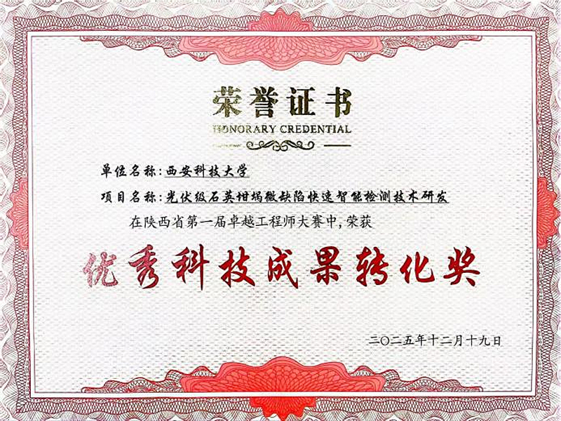 12月18日至19日,陕西省第一届卓越工程师大赛总决赛在榆林举行。西安科技大学通信与信息工程学院赵谦教授带领的工业视觉智检团队,凭借“光伏级石英坩埚微缺陷快速智能检测技术研发”项目,在竞争激烈的“揭榜挑战赛”赛道中脱颖而出,荣获“优秀科技成果转化奖”。