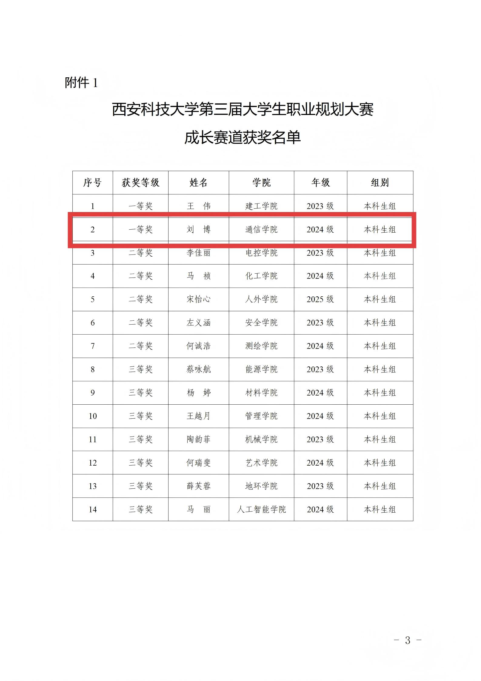 12月24日西安科技大学第三届大学生职业规划大赛在临潼校区骊山校园煤炭科技中心一楼报告厅落下帷幕。通信学院2024级本科生刘博荣获成长赛道一等奖,指导老师张剑荣获优秀指导教师。