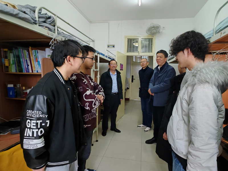 在学生公寓,文虎副校长逐一走进宿舍,与同学们亲切交谈,详细询问大家假期生活、返校行程、住宿适应、新学期学习规划等情况,认真倾听同学们的心声与诉求。他仔细查看宿舍环境卫生、供暖供电、设施保障等情况,叮嘱同学们注意人身财产安全,尽快调整作息状态,以饱满热情投入新学期学习生活。